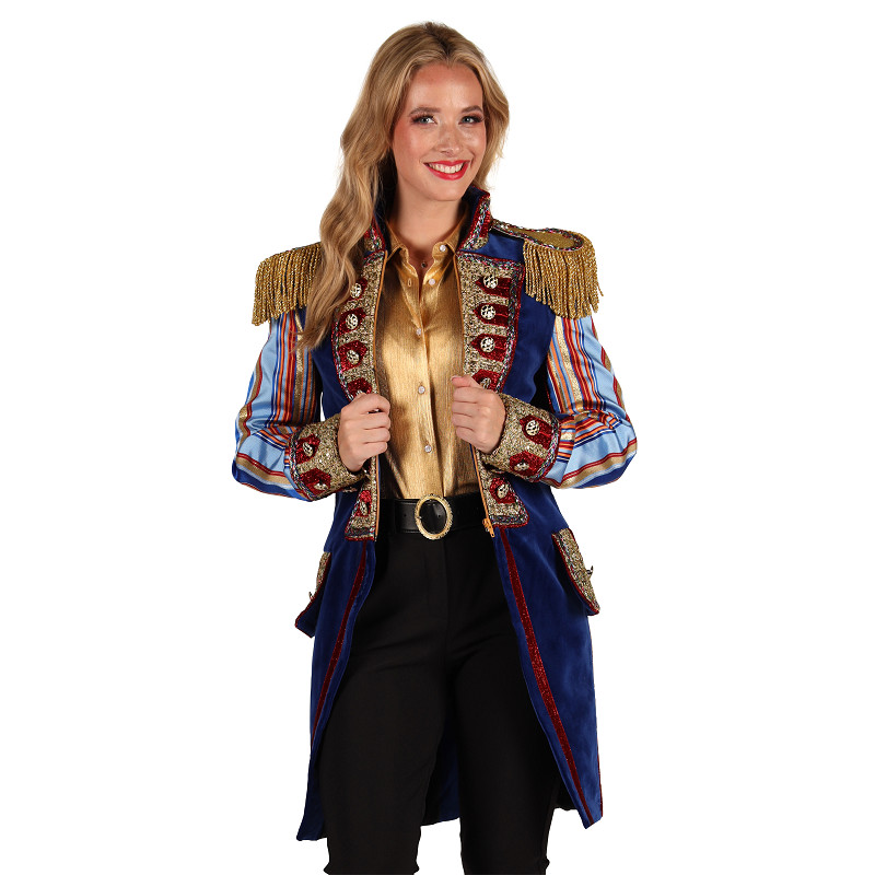 - Afgewerkt met sierknopen en epauletten